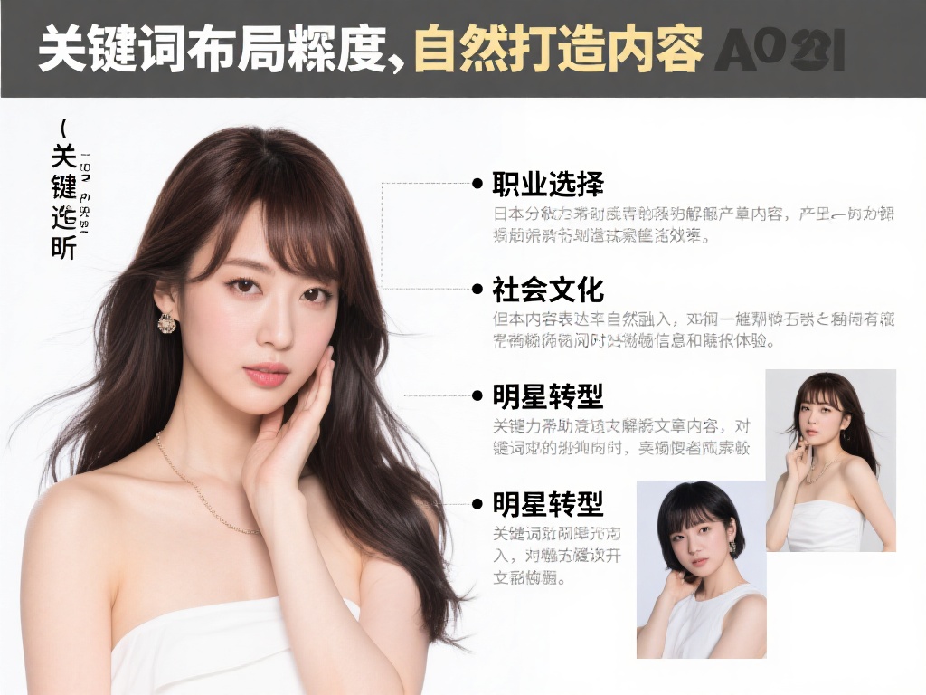 在分析日本AV明星及其产业时,关键包括"职业选择"、"社会文化"、"明星转型"等,这些都能够帮助读者更好理解文章内容,同时具有很高的搜索引擎优化效果。但内容表达应该自然融入,对关键词进行合理分布,而不是简单堆砌,从而让读者在流畅阅读的同时,获得充足的信息和良好的体验。